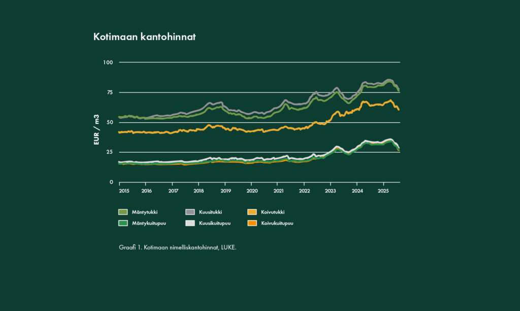 Lokakuussa 2025 otsikot ovat täyttyneet kemiallisen metsäteollisuuden lomautuksista, tuotannon rajoituksista, sekä UPM Kaukaan ja Sappi Kirkniemen yhden paperikoneen sulkemisista. Kemiallisen metsäteollisuuden haasteet ovat olleet tiedossa jo pitkään ja se on ollut nähtävissä metsäyhtiöiden osakekursseista. Suurin yllätys tilanteessa onkin ollut se, kuinka pitkään kesti, kunnes tuotantoa alettiin sopeuttamaan. Lopputuotteiden haastavasta markkinatilanteesta huolimatta puun hinnat saavuttivat uudet ennätykset keväällä 2025, ja monien tahojen ennusteet puumarkkinoista olivat positiivisia. AARI arvioi jo kevään 2025 markkinakatsauksessa laskupainetta erityisesti kuitupuulle.
